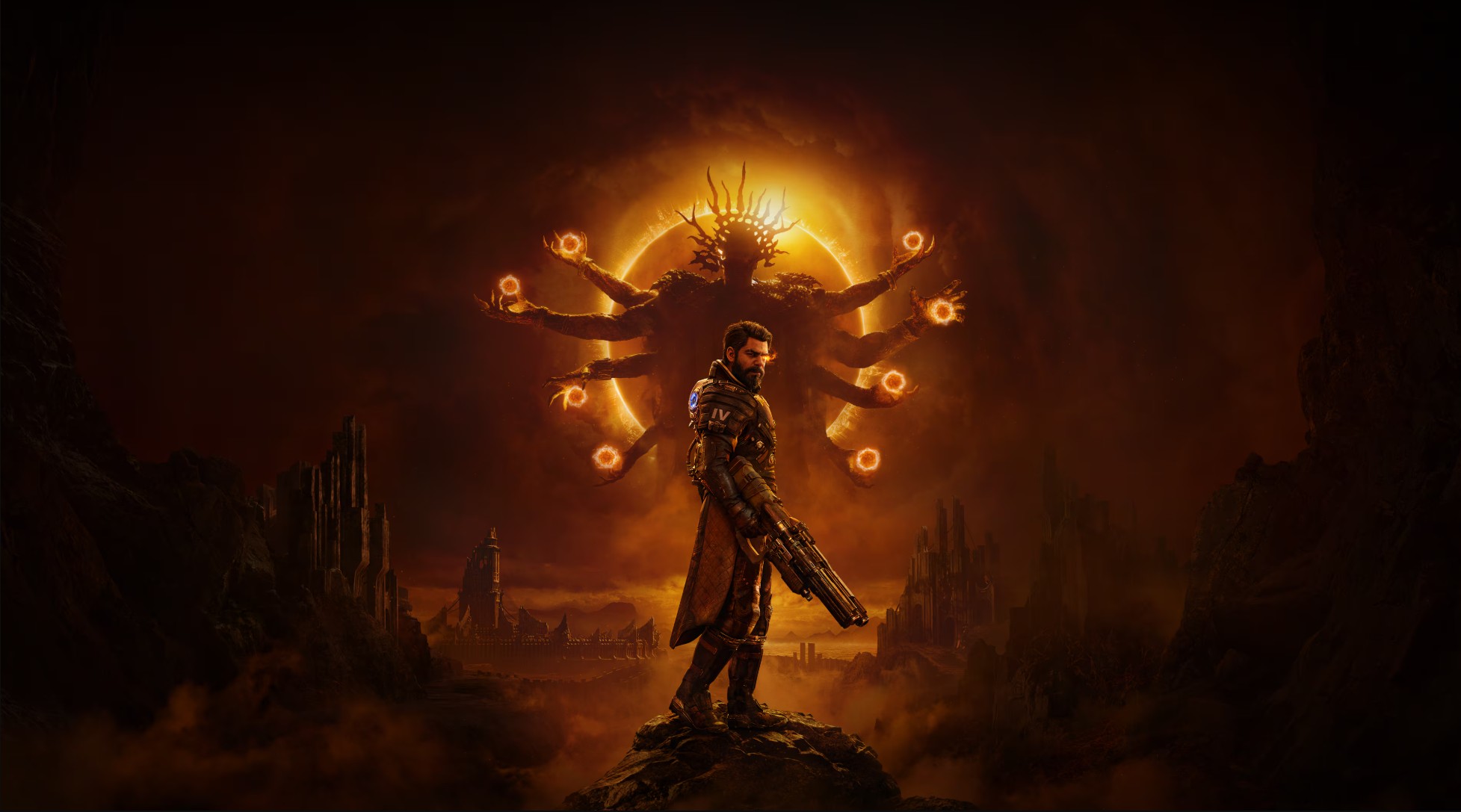 Uma adição interessante à estrutura de Saros é o eclipse, que transforma o mundo ao redor de Arjun. Quando isso acontece, a agressividade dos inimigos aumenta, e as recompensas tornam-se mais arriscadas. Visualmente, essa mudança é representada por um tom laranja que simboliza uma combinação de horror cósmico e surrealismo.